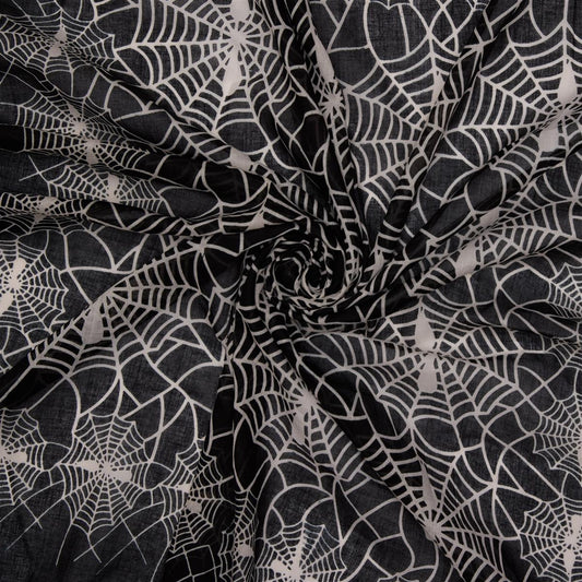 Baumwolltuch mit Ocult Spinnenweben Muster in Schwarz Weiß