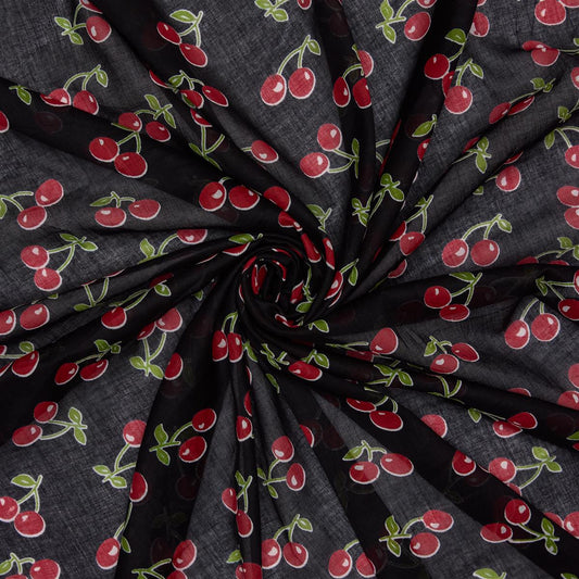 Baumwolltuch mit Kirsch Muster in Schwarz Rot