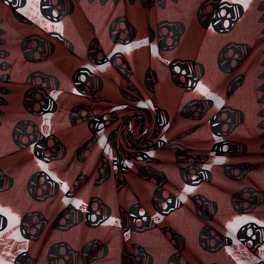 Baumwolltuch mit Batik Totenkopf Muster in Braun