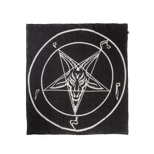 Baumwolltuch mit Baphomet Pentagram Ocult Muster in Schwarz Weiß