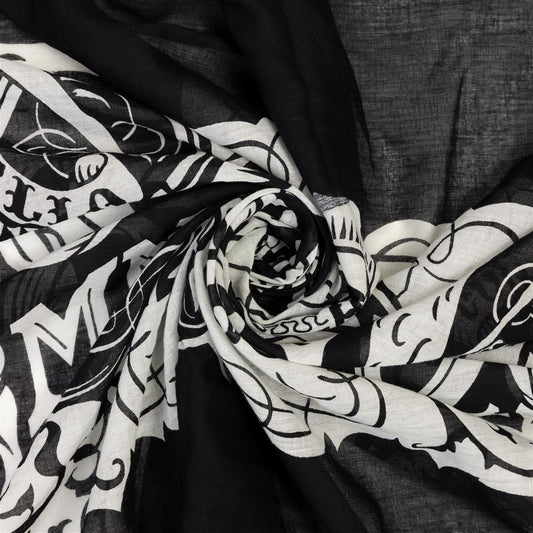Baumwolltuch mit Schädel Muster in Schwarz Weiß
