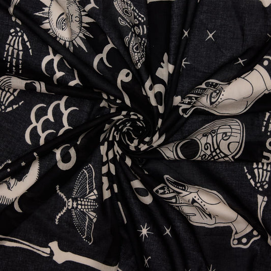Baumwolltuch mit Ouija Ocult Muster in Schwarz Weiß
