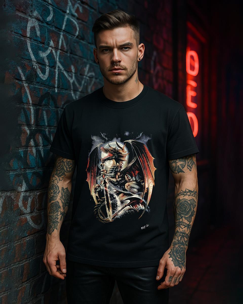 Bestelle noch heute unser wild leuchtendes T-Shirt mit gotisch inspiriertem Design und zeige deine Leidenschaft für alternative Mode, Tiere, Biker, Totenköpfe, Wölfe und den Sensenmann! Worauf wartest du? Sei mutig und definiere deinen eigenen Stil!
