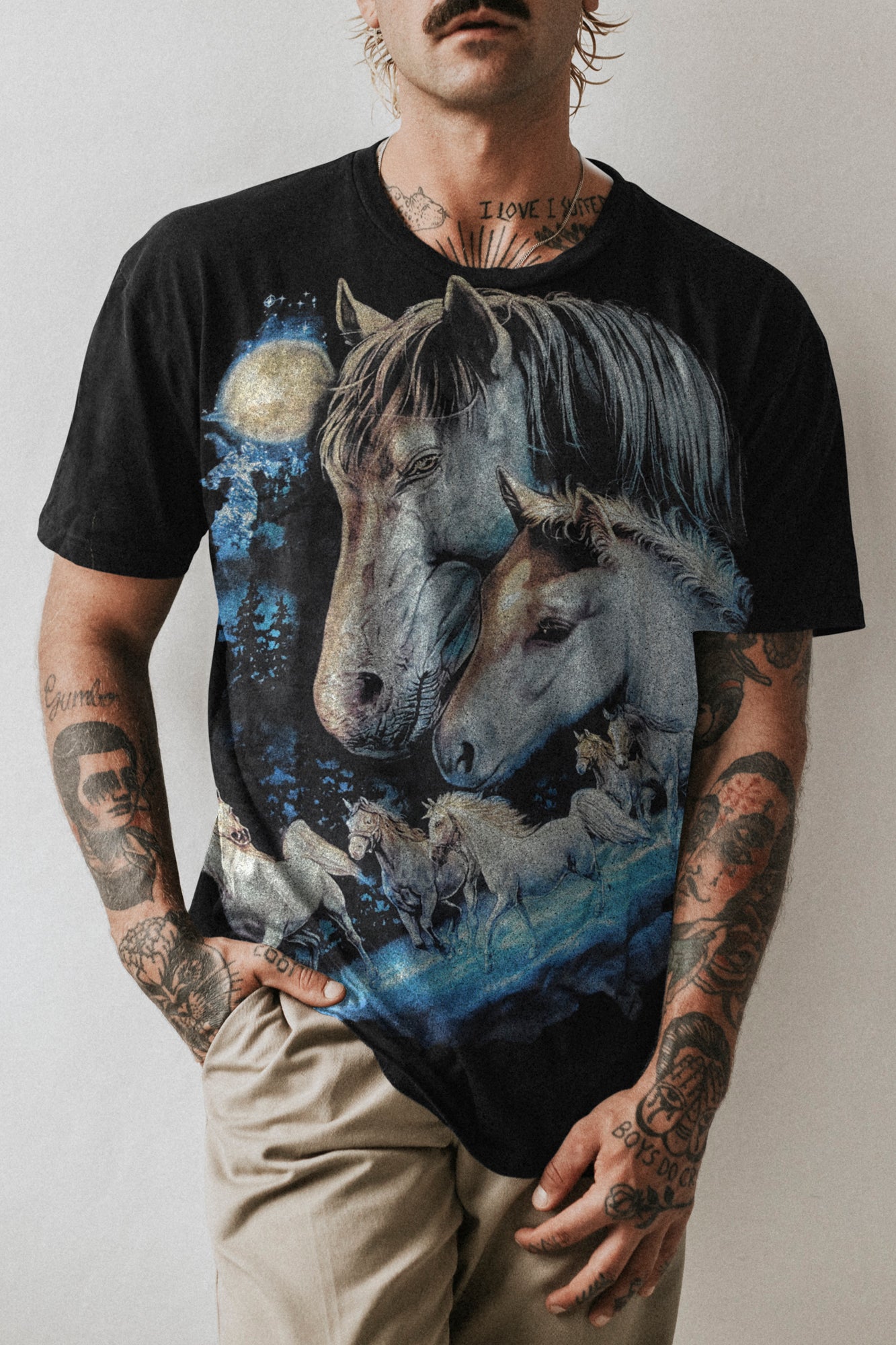 Bestelle noch heute unser wild leuchtendes T-Shirt mit gotisch inspiriertem Design und zeige deine Leidenschaft für alternative Mode, Tiere, Biker, Totenköpfe, Wölfe und den Sensenmann! Worauf wartest du? Sei mutig und definiere deinen eigenen Stil!